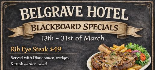 We are a pokie-free, family-owned hotel located in the heart of the Dandenong Mountains. Owner-operated since 2022, Belgrave Hotel is 100% independent, community-minded, and dedicated to serving our locals and visitors. Just a short stroll from Puffing Billy, specialty shops, and the National Park, our bar bistro takes pride in offering genuine hospitality, quality food, and service with the charm of a true local pub. With live music featuring local bands, hearty meals, special events, interactive shows and a focus on value, connection, and good times, we can’t wait to welcome you through our doors and make you feel right at home.