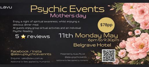 Celebrate Mother’s Day with a unique night of connection, intuition, and indulgence at the Belgrave Hotel. Enjoy a delicious dinner alongside group spiritual experiences and a personal psychic reading—an unforgettable evening of insight, warmth, and special moments.